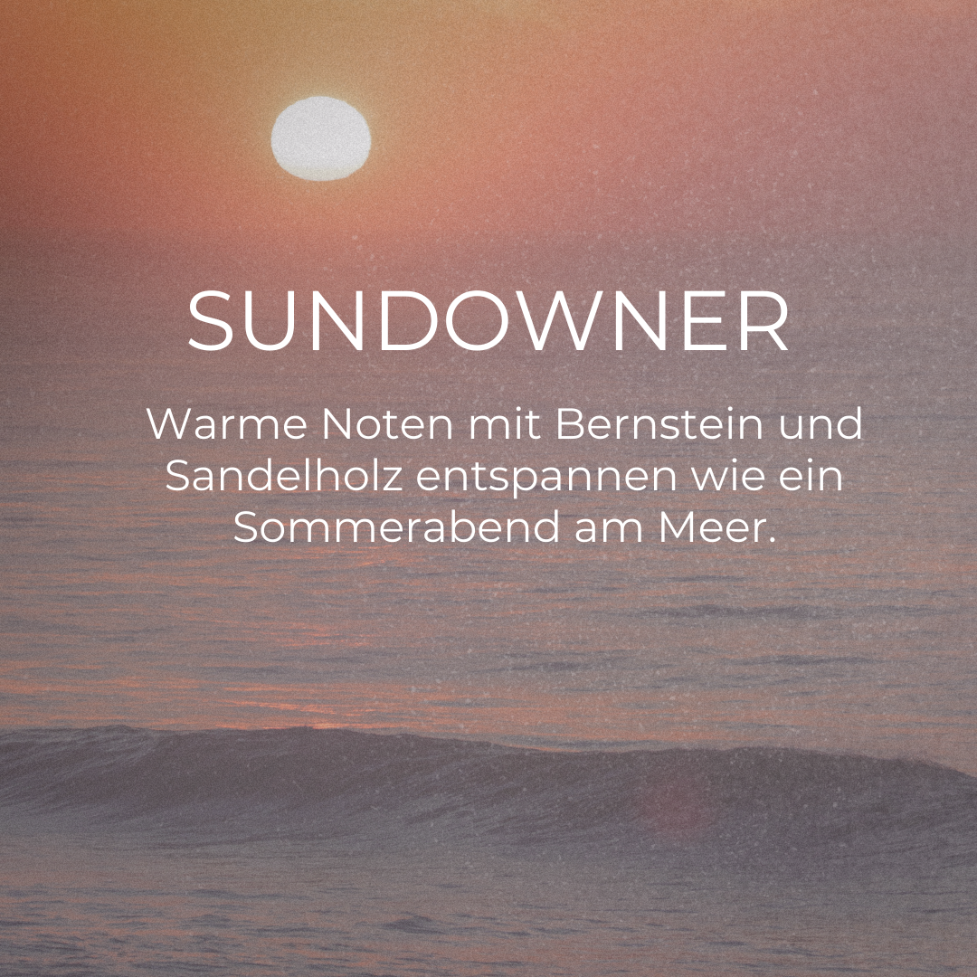 Zwei Raumsprays, die nach Weite und unvergesslichen Momenten duften. TAG AM MEER bringt die belebende Frische von salziger Gischt und Zitrus in Dein Zuhause, während der SUNDOWNER mit warmem Sandelholz und Bernstein die Magie eines Sonnenuntergangs einfängt. Perfekt für jede Stimmung – jetzt zum Kennlernpreis bestellen.