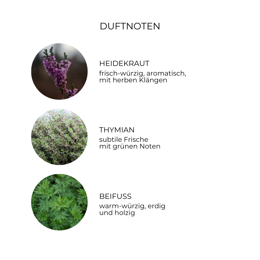 “Ein Spaziergang durch die Dünen gibt mir sofort neue Energie. Der Duft von Heidekraut und Sandthymian liegt in der Luft, frisch und belebend. Genau dieses Gefühl wollte ich einfangen – für einen perfekten Start in den Tag. Jedes Mal, wenn ich meine Hände wasche, fühlt es sich an wie ein kleines Stück Sylt am Morgen. Mein absoluter Lieblingsduft!”