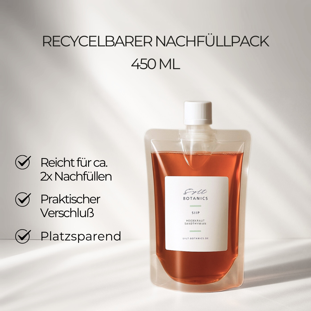 - Nachhaltig nachfüllen – praktischer 450ml Refill im recycelbaren Beutel.