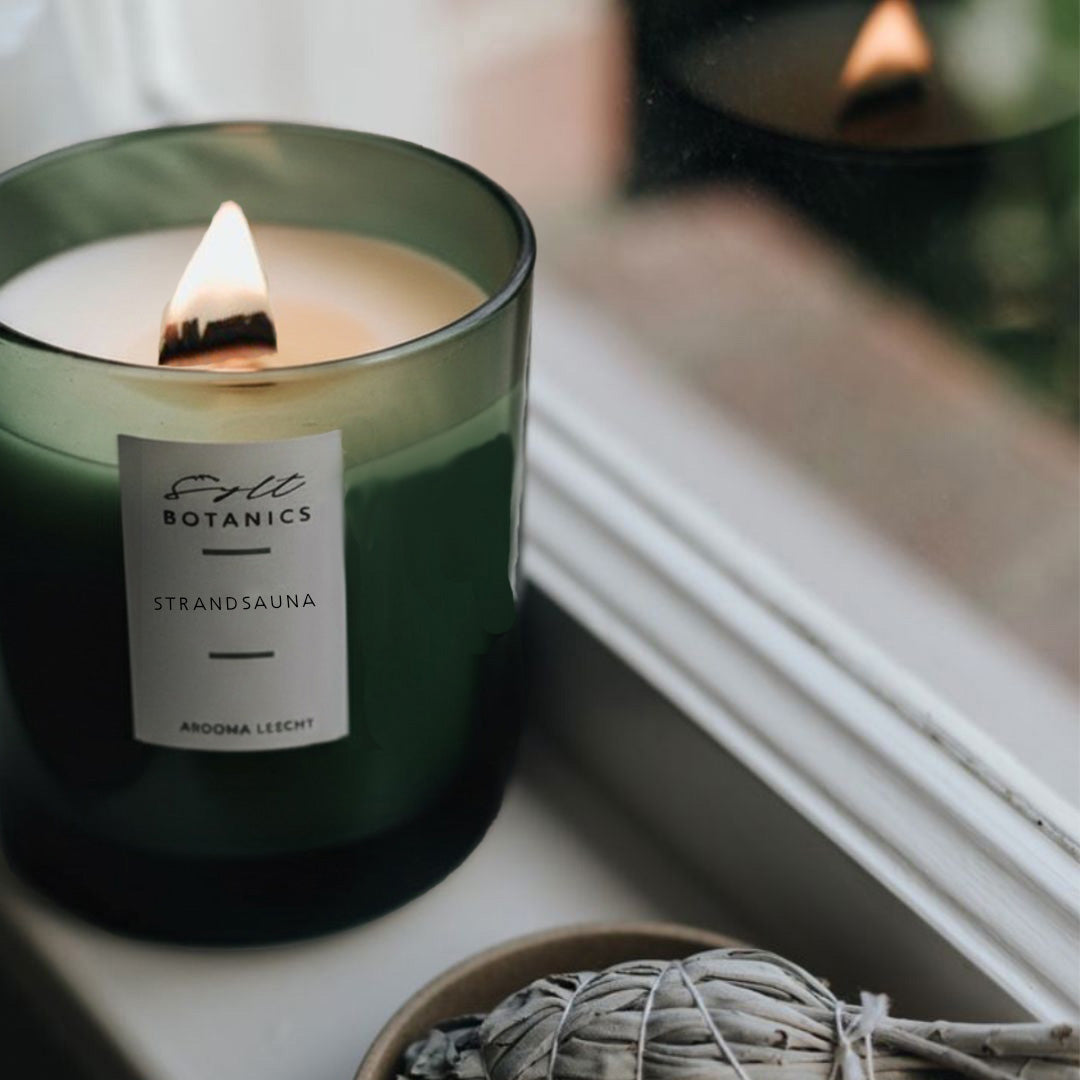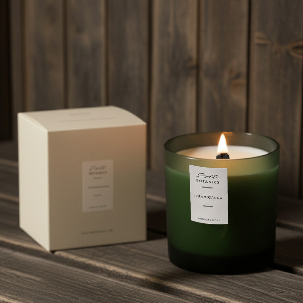 Wenn würziger Rosmarin, klarer Eukalyptus und die holzige Wärme von Fichte und Birke auf salzige Nordseeluft treffen, entsteht die besondere Atmosphäre einer Sylter Strandsauna. Die Duftkerze STRANDSAUNA fängt dieses Gefühl ein: ein warmer, vitalisierender Duft, der belebend wirkt und zugleich tiefe Ruhe schenkt.