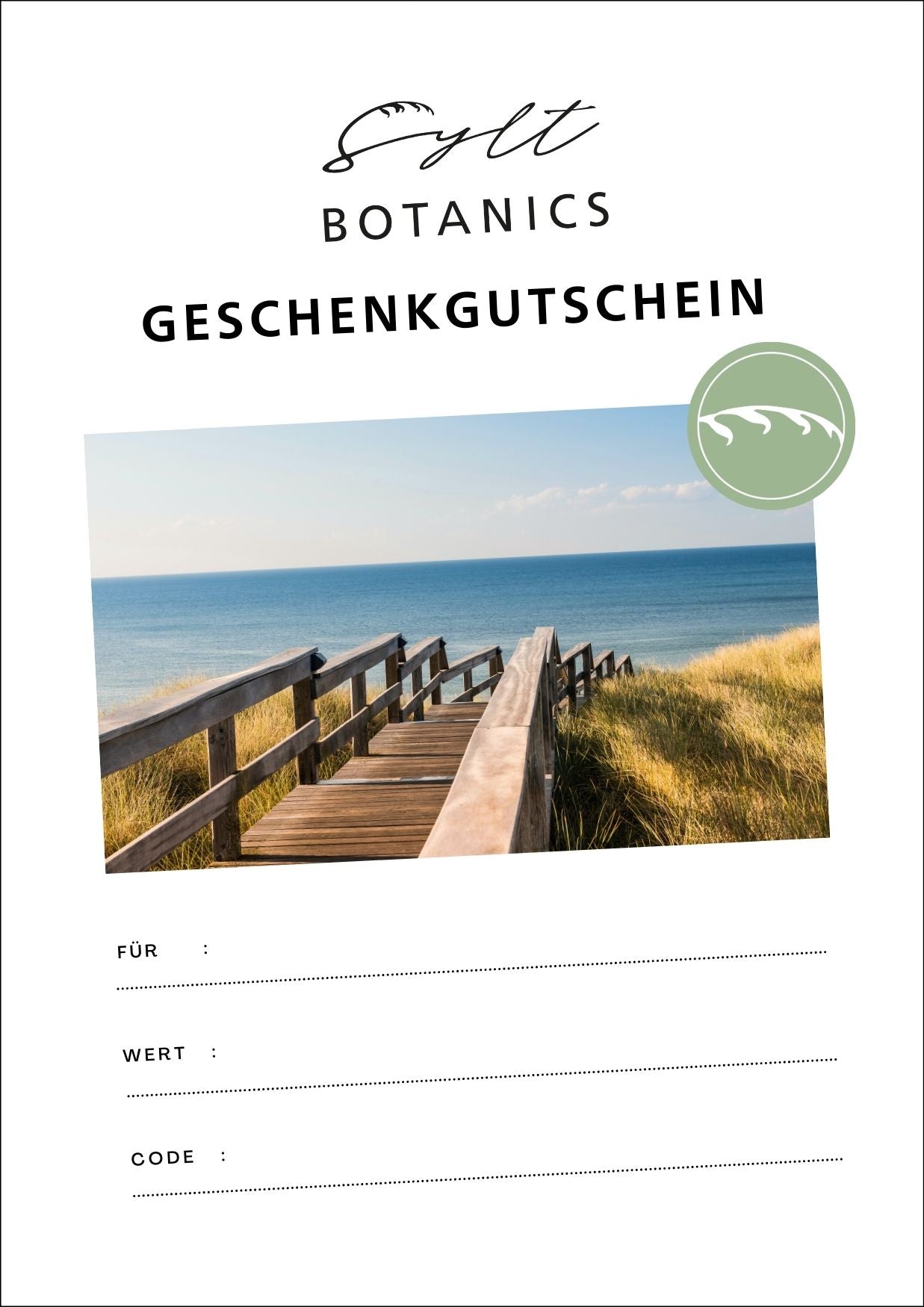 Solltest du einen speziellen Wunsch haben oder einen Gutschein zum Ausdrucken verschenken wollen, dann schreib uns gerne direkt an kontakt@sylt-botanics.de.